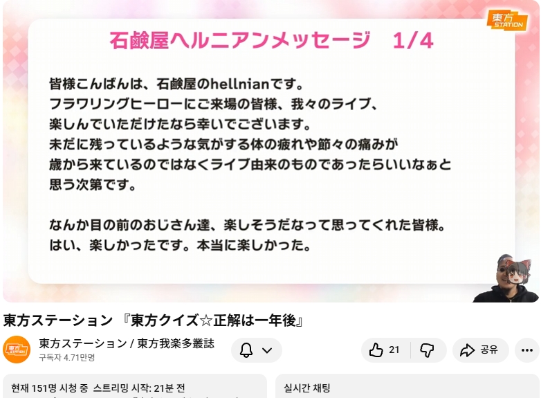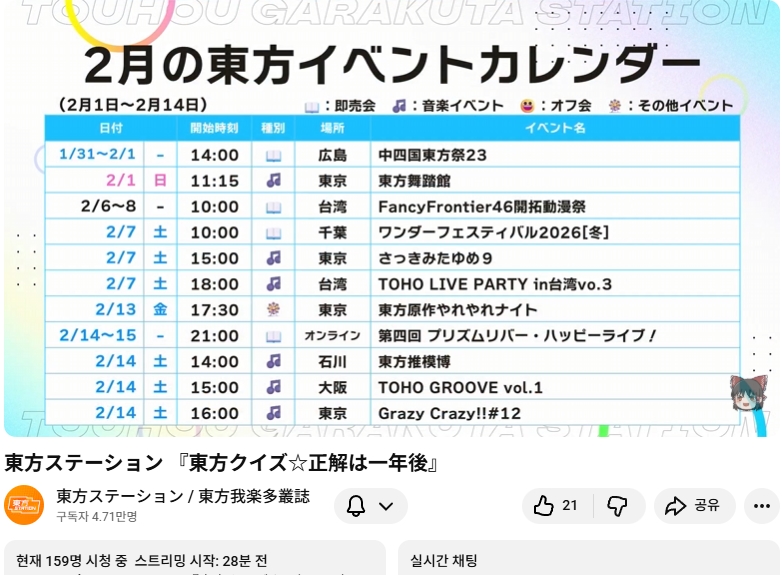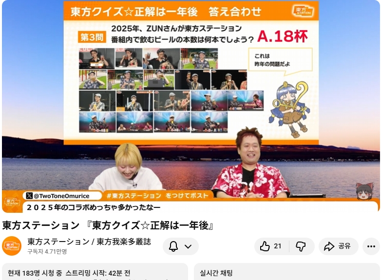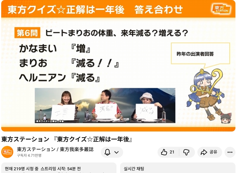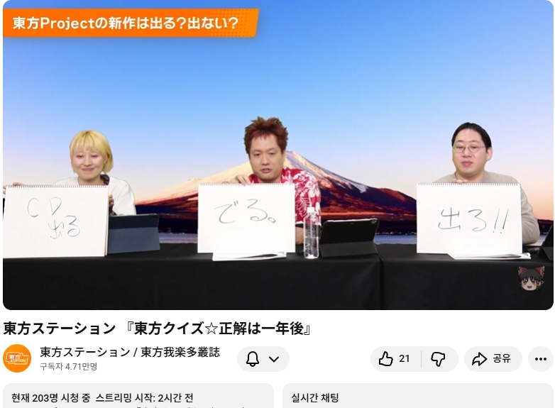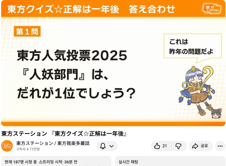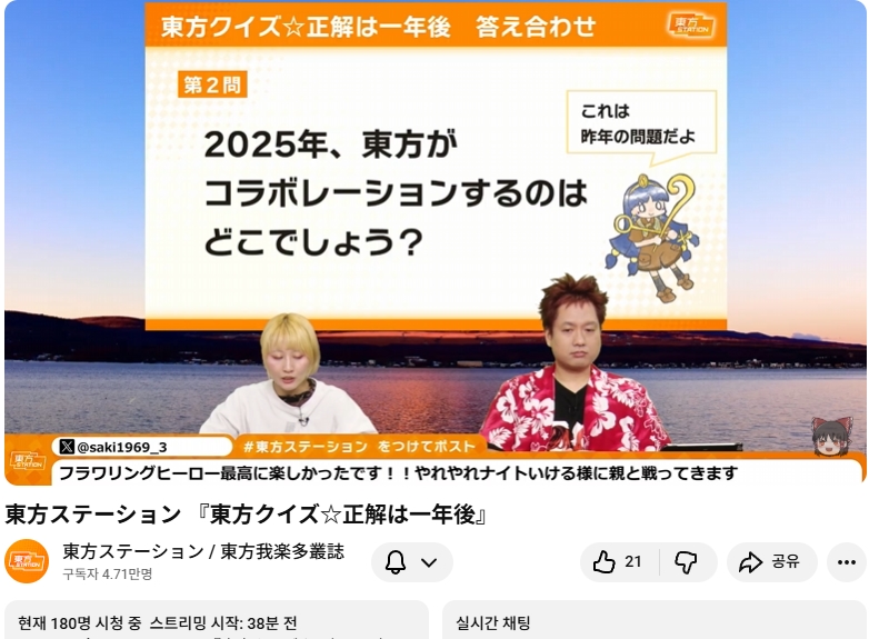 ⛩️ 동방스테이션 「 동방 퀴즈 ☆ 정답은 1년후 」📺