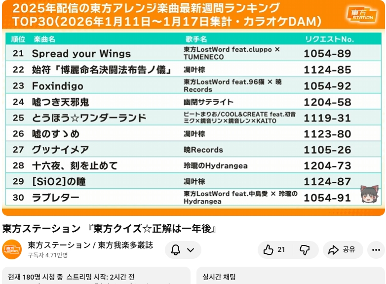 - 동방 가라오케 카운트다운 (DAM)