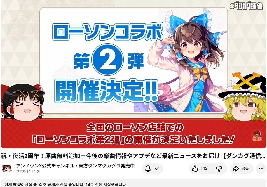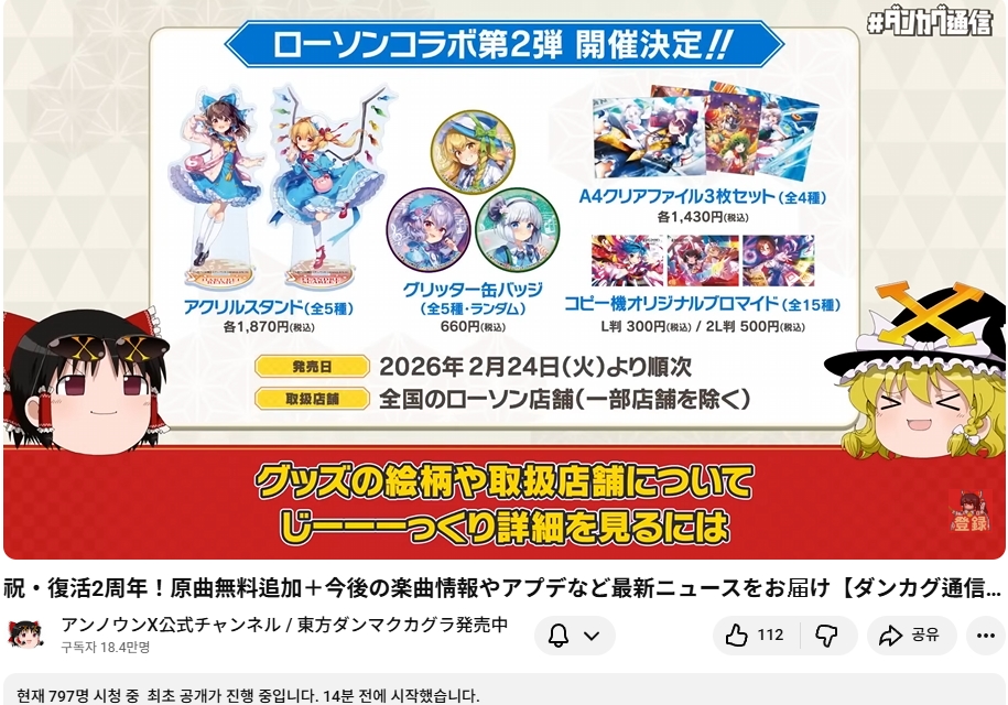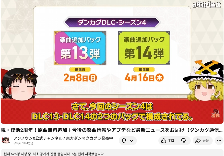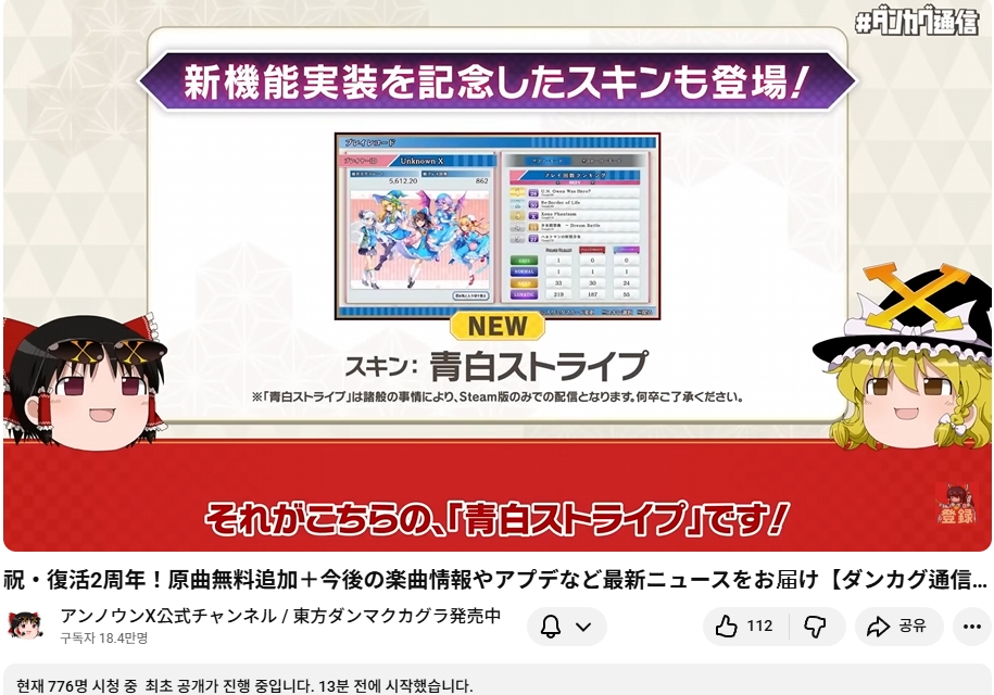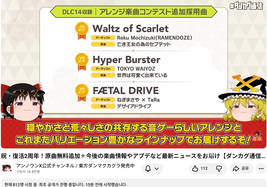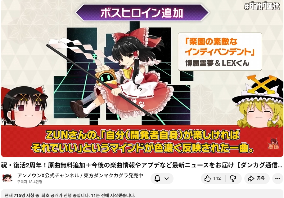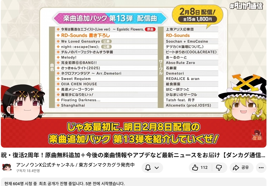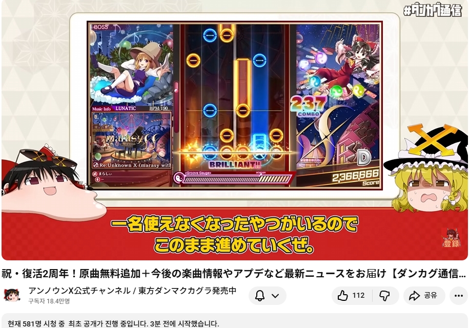 2월 7일 (토) 오늘 20시부터 동방탄막카구라의 부활 (스팀판 등장) 2주년을 맞아 탄카구 통신 방송이 있었습니다.