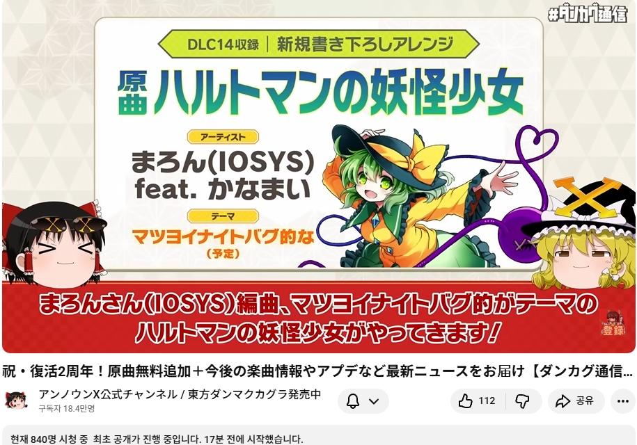 무료로! ZUN님의 그 곡이! 추가됩니다!