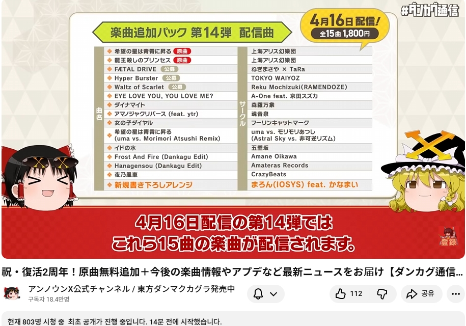 그리고 14탄을 위한 신규 제작 악곡은 마론님과 카나마이님이 참여한 악곡의 예정