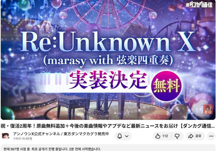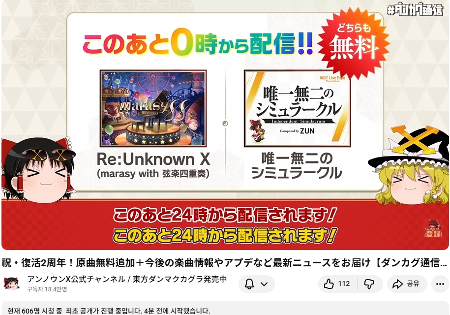 ○ 관련 : https://simugung.tistory.com/983 언노운X, 동방 30년 돌파 기념 '탄카구 신년회' 방송 실시 (ZUN님 게스트)