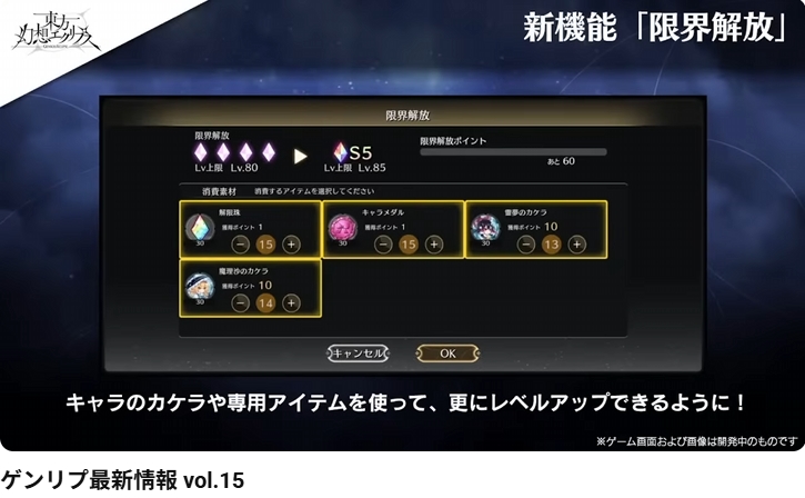 - 캐릭터의 조각이나 전용 아이템을 사용하여 한층 더 레벨 업이 가능하게