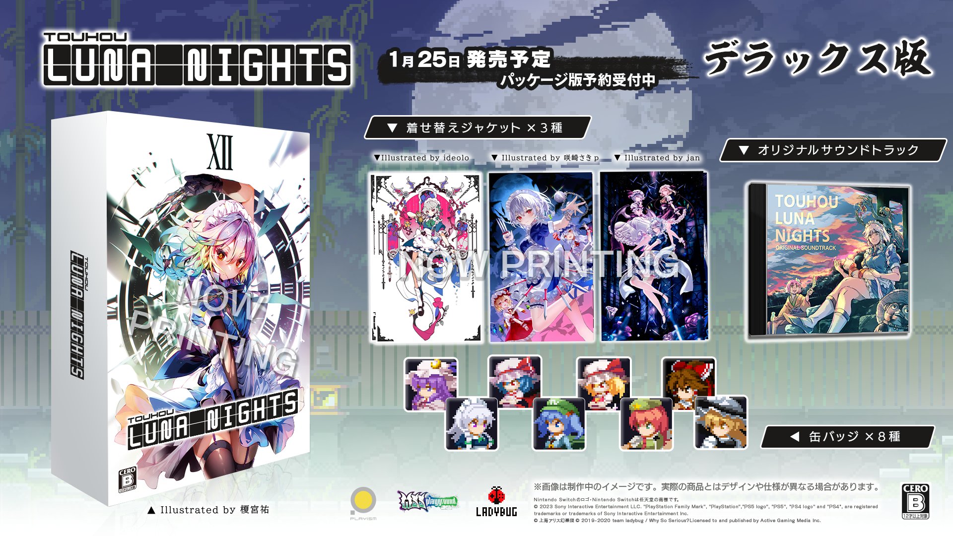 2024年1月25日にNintendo Switch/PS4/PS5でパッケージ版を発売する『Touhou Luna Nights』のデラックス版特典イラストや各小売店舗の特典詳細を公開します!