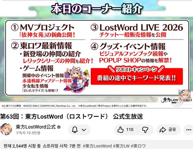 【#東方LostWord 公式生放送 第63回】