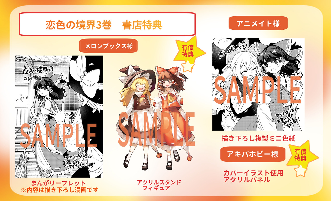 ○ 관련 : https://simugung.tistory.com/1095 동방 2차창작만화 '사랑빛의 경계(恋色の境界)' 단행본 3권의 표지와 특전 정보 공개 (3/27 발매 예정)