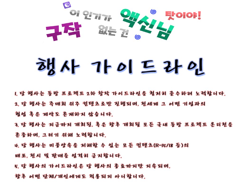 '구작이 인기가 없는 건 액신님 탓이야!' 행사의 가이드라인 및 전체적인 공지사항을 업로드합니다.