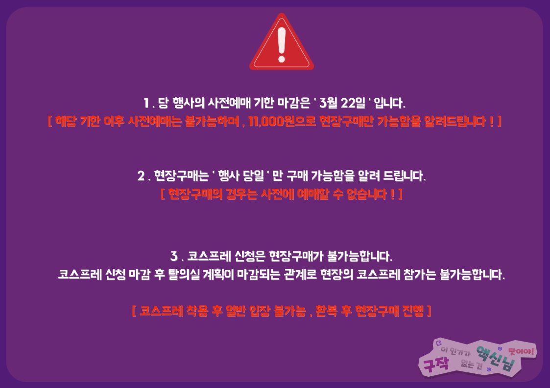 이렇게 행사 주최 측의 주요 공지 및 주의사항, 안내 등을 모아 살펴보았습니다.