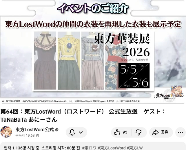 | 올해(2026) 동방x유원지 콜라보의 정보가 공개 '하쿠레이신사 여름 마츠리 2026 in 요미우리랜드' (6/20~8/23) (0) | 2026.04.05 |