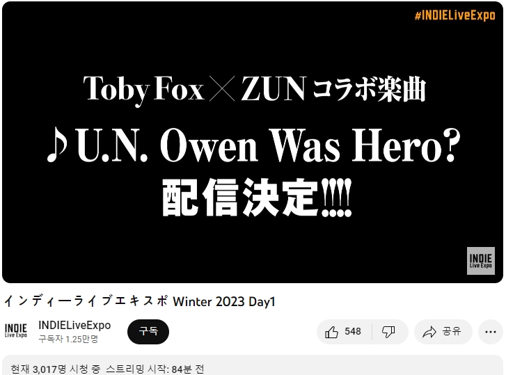 토비폭스씨와 ZUN씨의 콜라보 악곡 참가에 대한 언급과