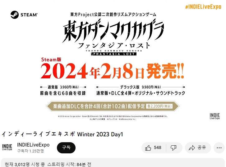 INDIELiveExpo Winter 2023 의 1일차 방송이 있을 예정입니다.