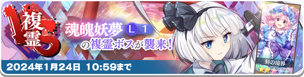 1. 렐릭 유유코 (刻の境界 西行寺幽々子(L80)) 픽업 소환 개최 (~1/24 10:59)
