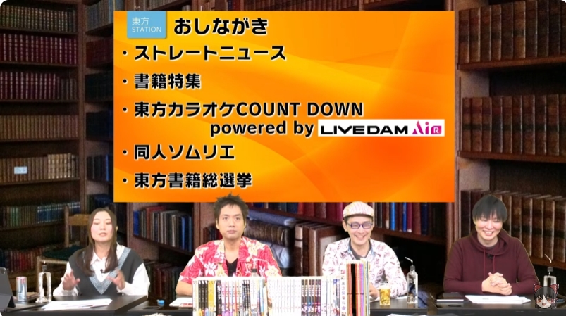 이날의 방송 멤버는 언제나의 MC 두 분(카나마이, 비트마리오)과 게스트로 아쿠아스타일, 언노운X의 준야님과 ZUN님 이 있었습니다.