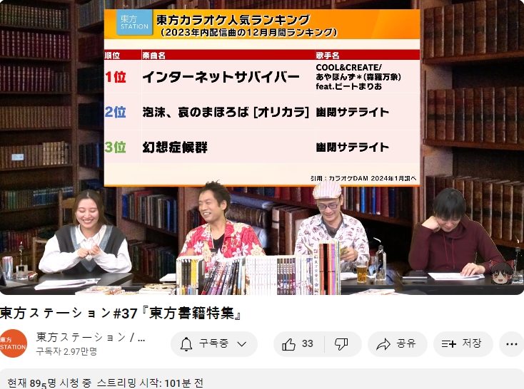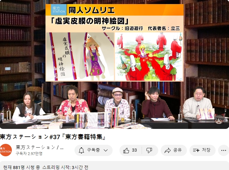 그리고 잘보시면 실제로 방송 진행자들 앞으로 각종 동방 서적들이 보입니다.