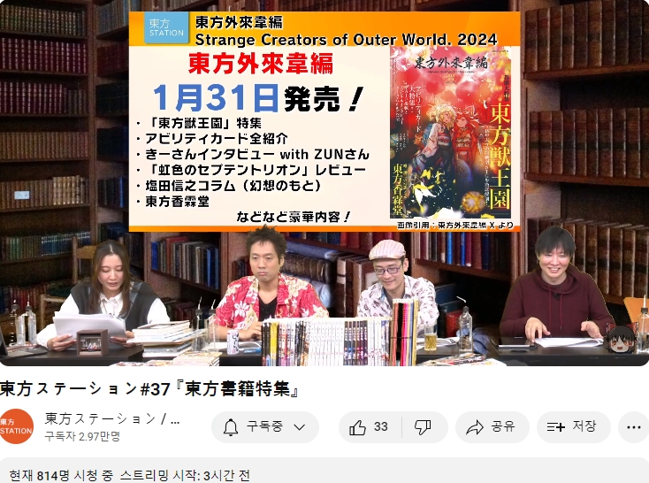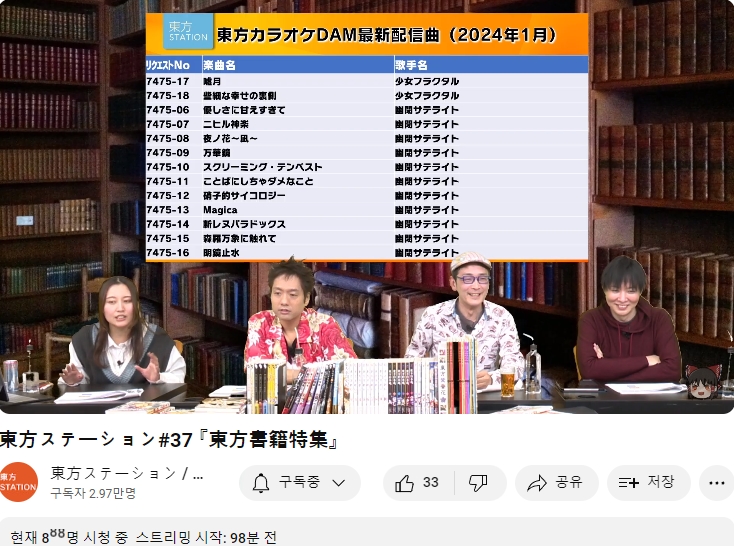 그리고 이 방송 마지막에 ZUN님이 화요일날 두잔라디오 방송이 있고, 셋켄야 분들잉 게스트라고 예고하셨는데,