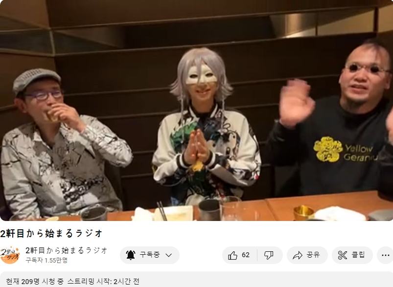 "오늘, 20시부터 2잔째 라디오를 방송합니다. 새해 1번째의 호화 게스트는 셋켄야의 헤르니안님과 슈조님 입니다!"