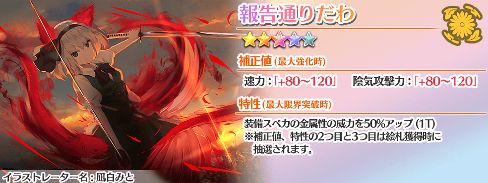 신규 캐릭터인 수영복 코가사 에픽 한정 소환 개최와 함께 추가되는 (픽업 대상) 장비카드 サマーモンスター (섬머 몬스터)