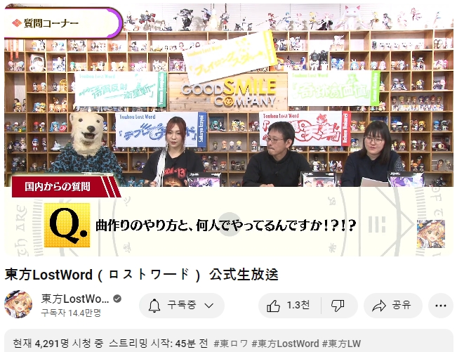 중간 질문코너에서는 로스트워드나 부타오토메 분들 (인게임 악곡들을 만드시는) 에 대한 이런 저런 질문이 있었습니다.