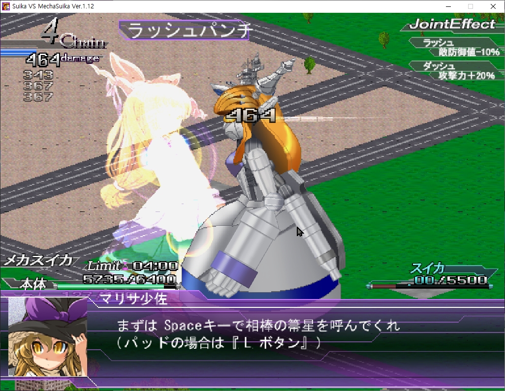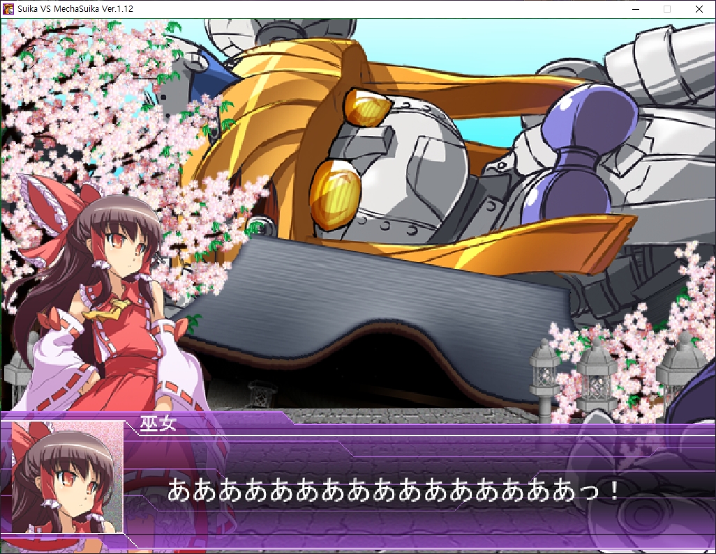 치르노가 조종하던 대 스이카용 로봇 메카스이카가 신사를 박살내자 열받은 레이무가 메카스이카에 탑승하여 대괴수 스이카와 싸우게 됩니다.