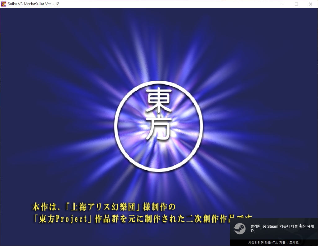 예전 한 2012년경에 나왔었던 서클 대설전(大雪戦) 의 '스이카 대 메카스이카' 가 스팀, DL사이트 등을 통하여 다운로드판으로 나왔다고 합니다. 이 서클의 동방 2차창작게임 소식은 꽤나 오랫만인 것 같군요.