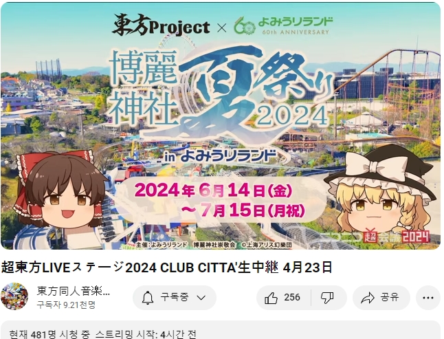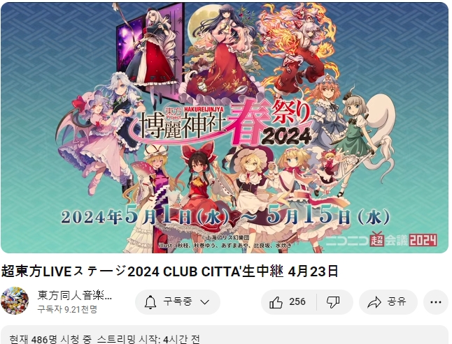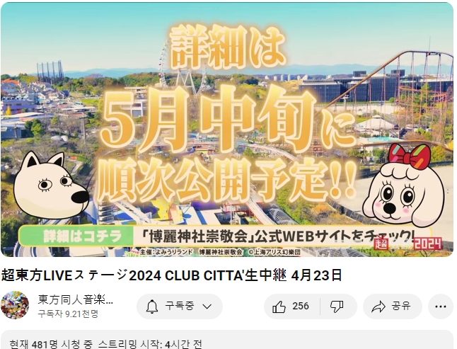 2024년의 '초 동방 라이브 스테이지 2024' 가 4/23~24 에 실시예정