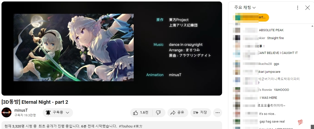 ○ 관련 : https://simugung.tistory.com/257 MinusT님의 3D탄막영상 'Eternal Night 파트2', 오는 5월 5일 공개 예정..!