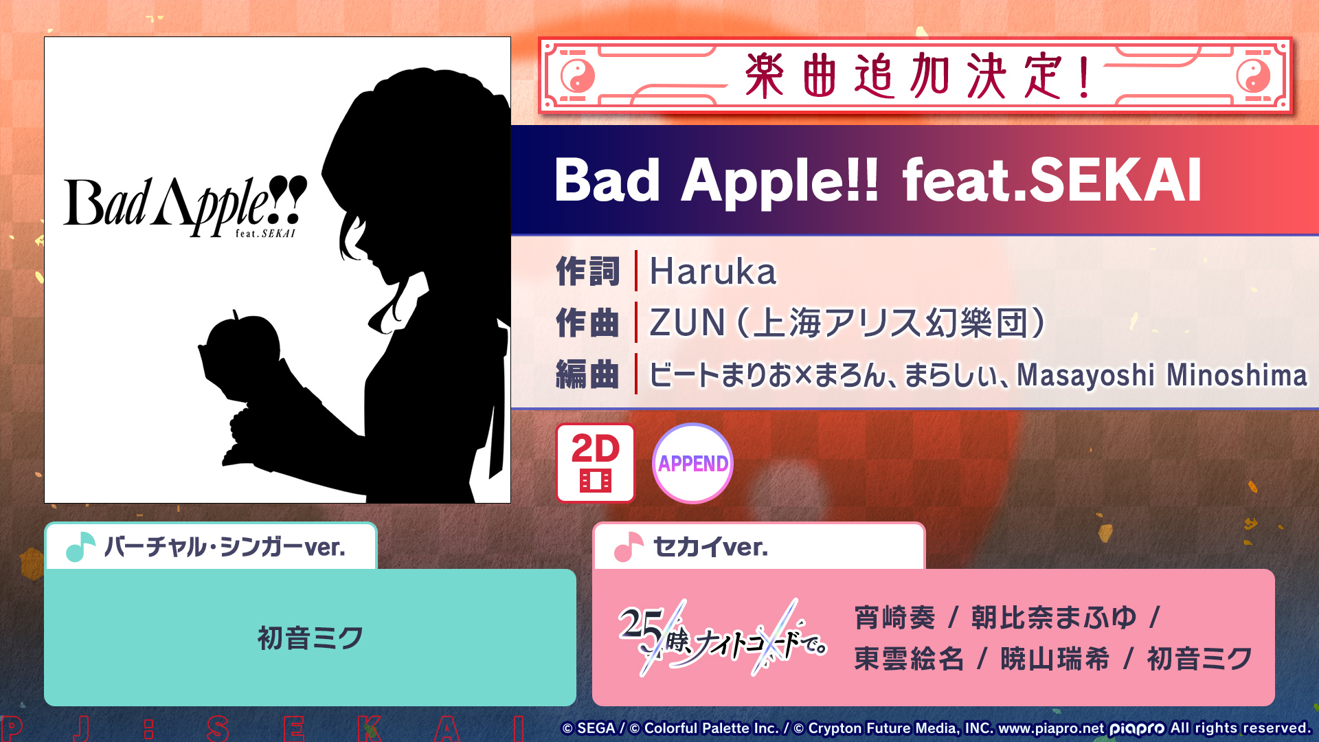 『Bad Apple!! feat.SEKAI』を追加💿