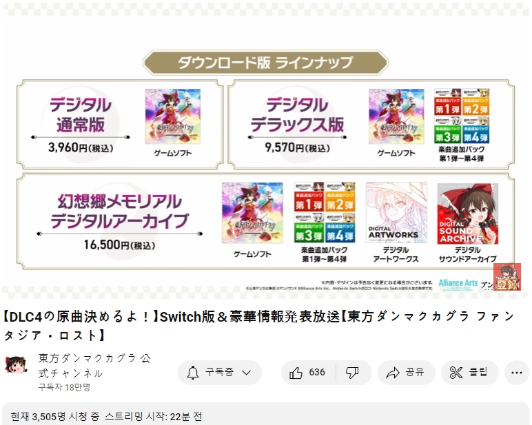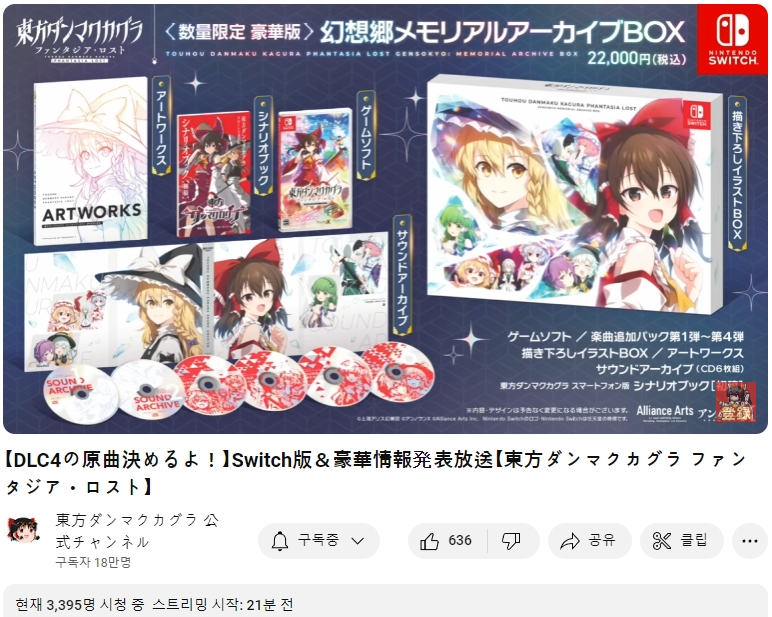 ○ 관련 : https://simugung.tistory.com/215 동방 탄막카구라(PC판) 악곡 DLC 2탄을 출시, 개발자 생방송으로 스위치판의 정보도
