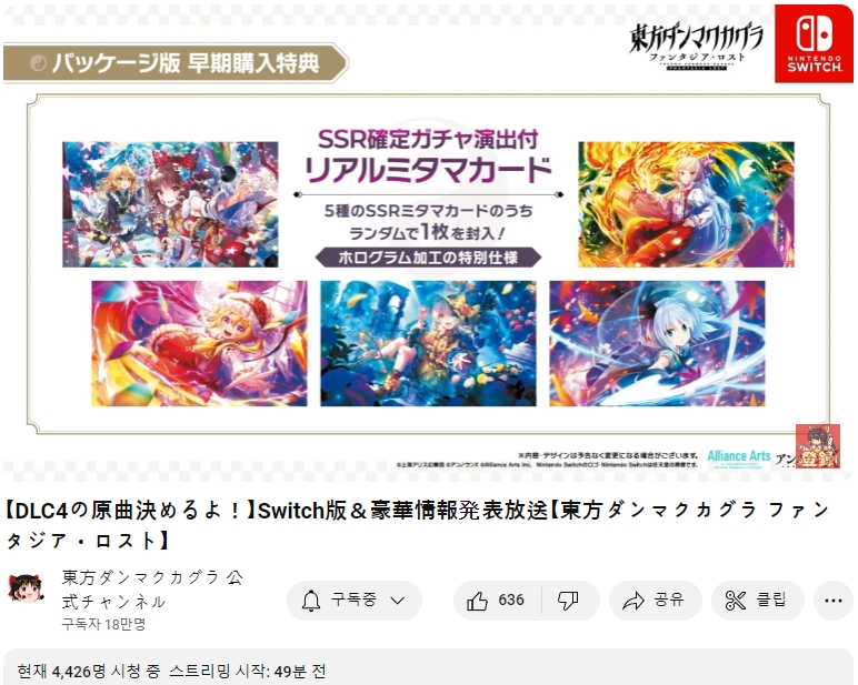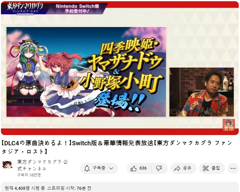 [DLC4의 원곡 결정해요!] 스위치판 & 호화 정보 발표 방송 [동방탄막카구라 판타지아 로스트]