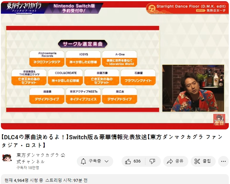 악곡 DLC 4탄을 앞두고 들어갈 악곡과 ZUN님의 원곡 중 무엇이 들어갈지 정하는 선곡 드래프트 및 탄막카구라 관련 신규 정보 등도 다뤄진다고 하는군요.