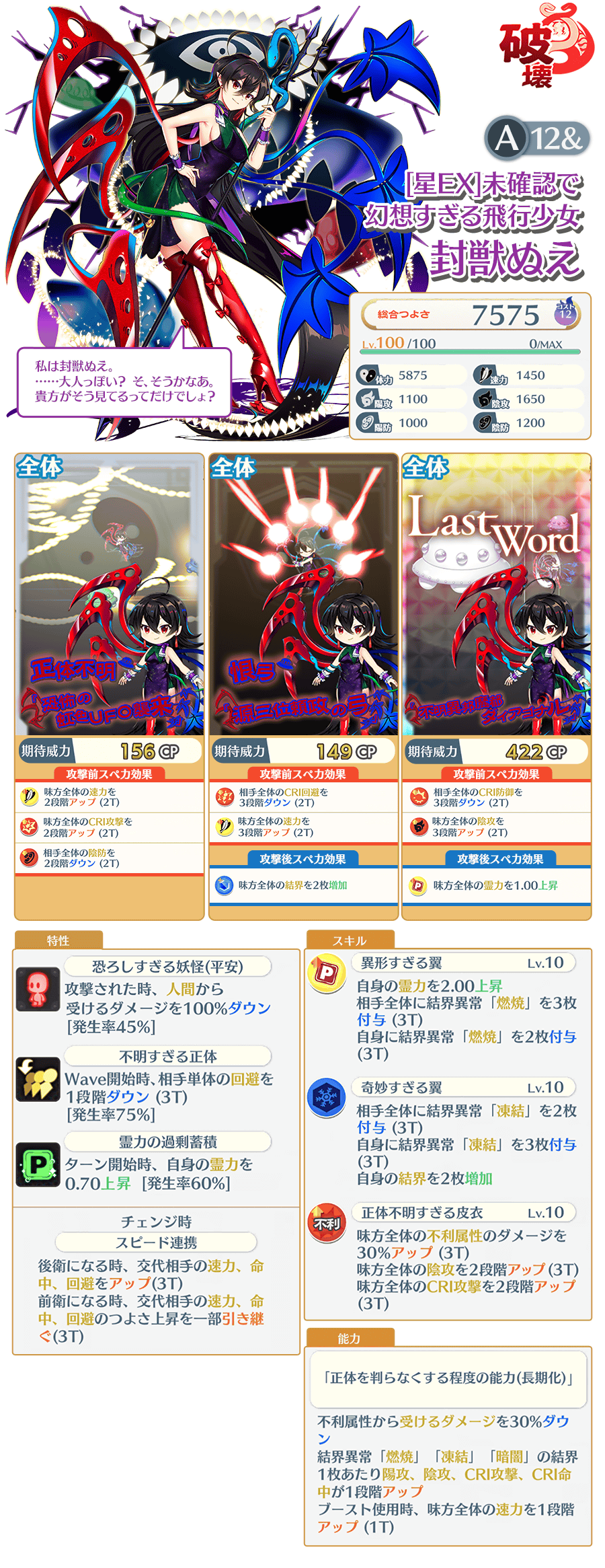 「[星EX]未確認で幻想すぎる飛行少女 封獣ぬえ(A12&)」が登場します✨