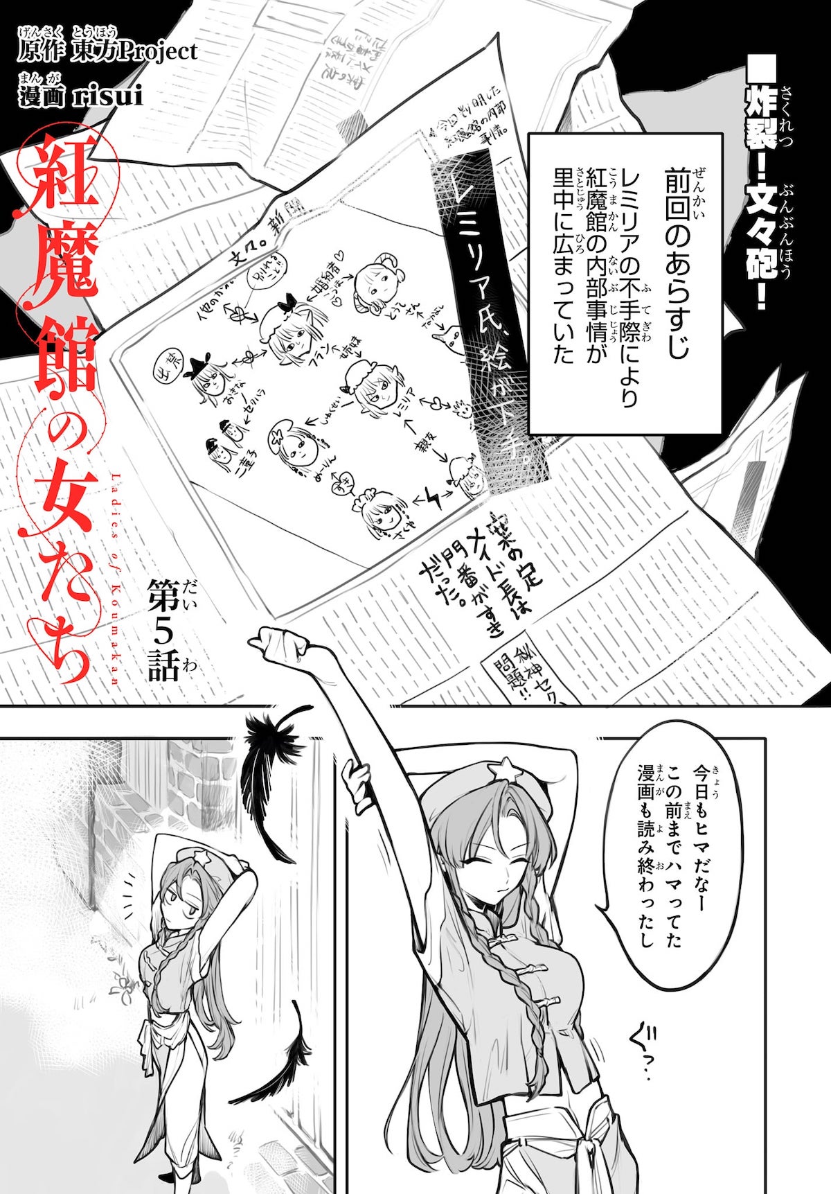 5/27更新:risui先生(@petra_beta )が執筆する「紅魔館の女たち」第5話。前回隠岐奈がバラした秘密が文々。新聞に掲載されてしまい……どうなる「咲夜→♡→美鈴」⁉https://t.co/CPkCYKEfTU