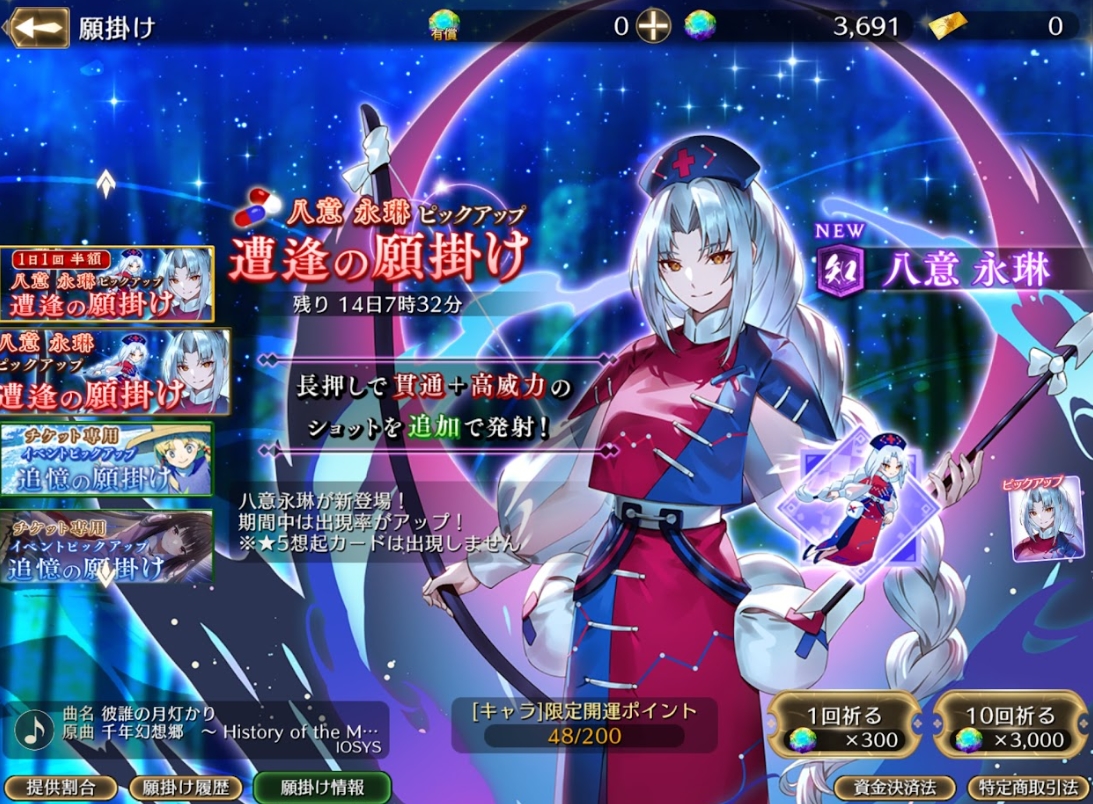 ・八意永琳ピックアップ 遭逢の願掛け開催