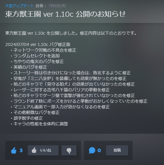 東方獣王園 ver.1.10cアップデート | 東方Projectよもやまニュース https://t.co/sPS1eyv0K4 #東方よもやまニュース
