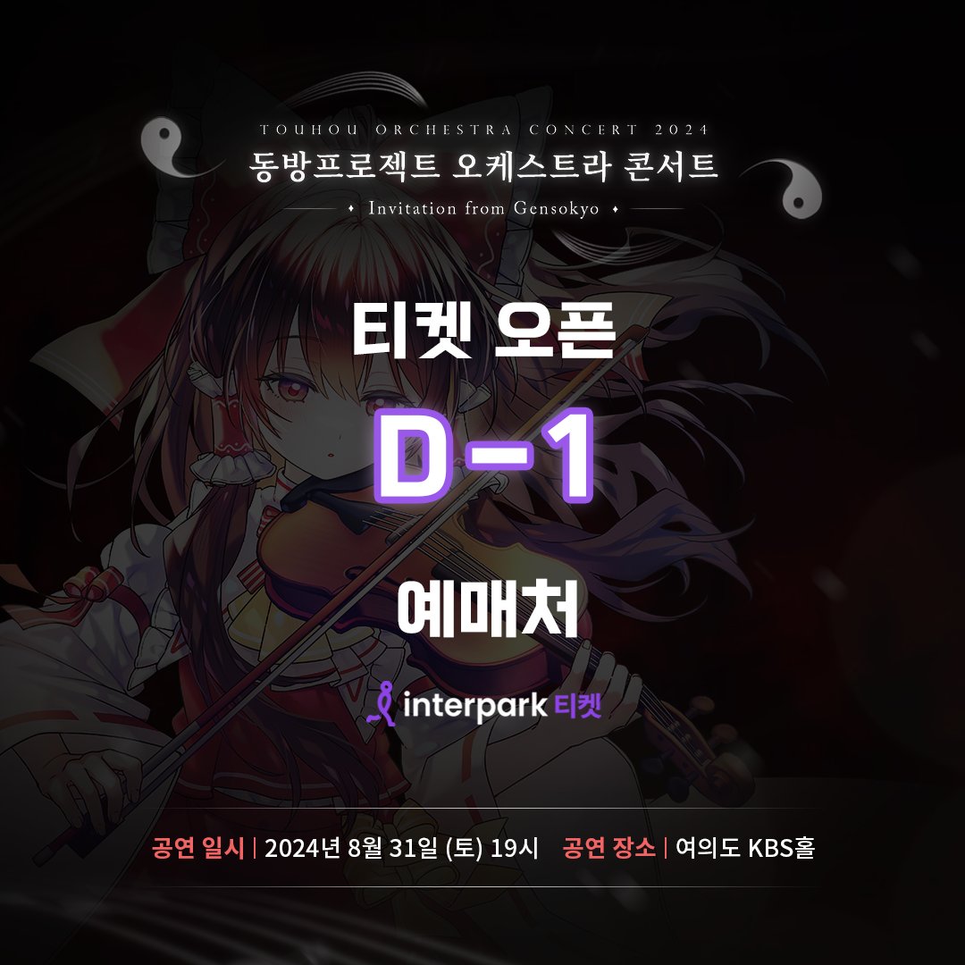 오는 8월 31일 개최 예정인 2024 동방프로젝트 오케스트라 콘서트, 예매 개시 까지 D-1 입니다.