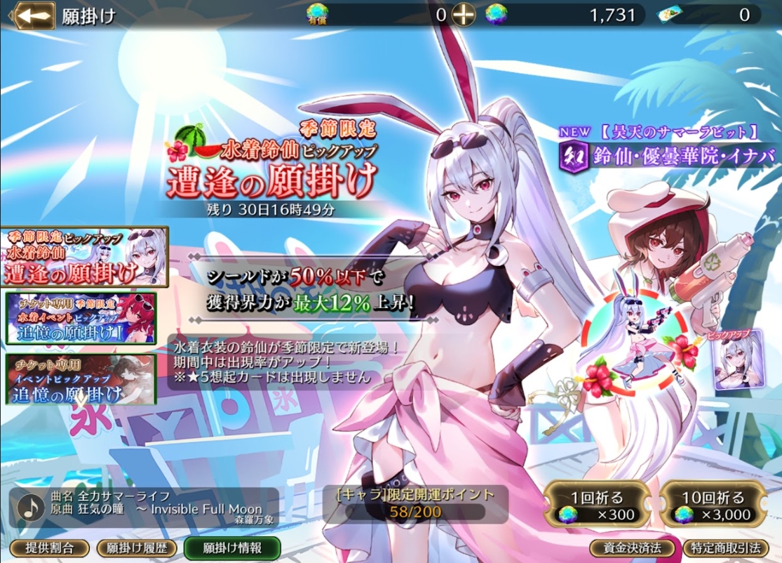 ・「季節限定 水着鈴仙ピックアップ 遭逢の願掛け」開催#ゲンリプ…