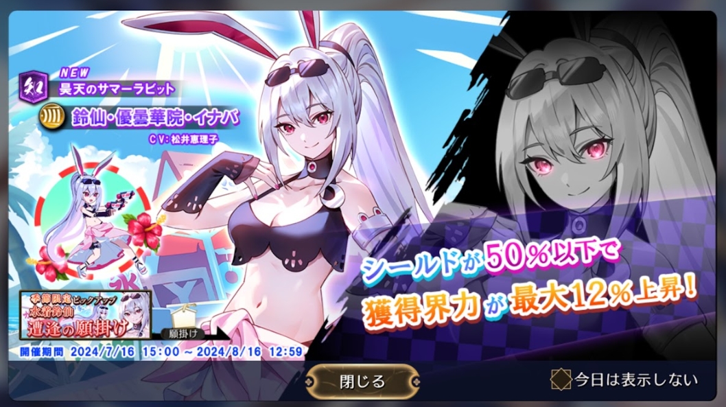 「季節限定 水着鈴仙ピックアップ 遭逢の願掛け」で登場!#ゲンリプ#東方幻想エクリプス pic.twitter.com/YP8029bYqJ