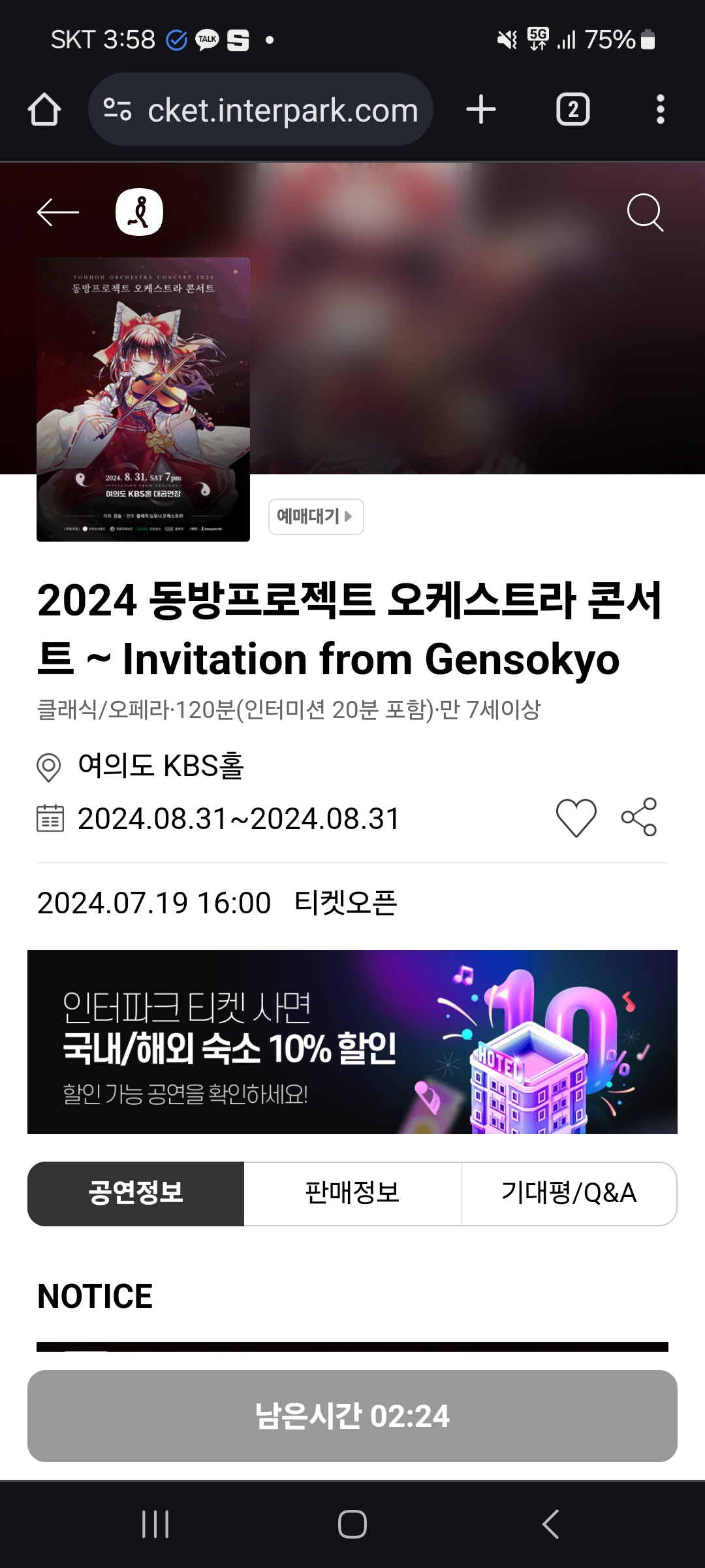 2024 동방프로젝트 오케스트라 콘서트의 티켓 예매 개시까지 D-1, 예매 페이지 공개