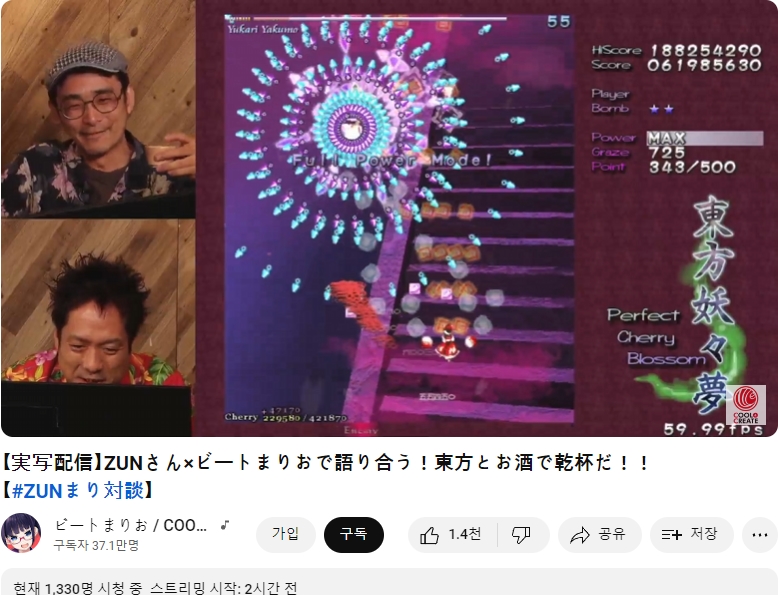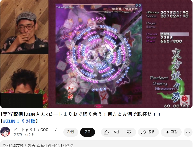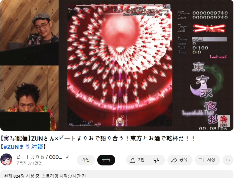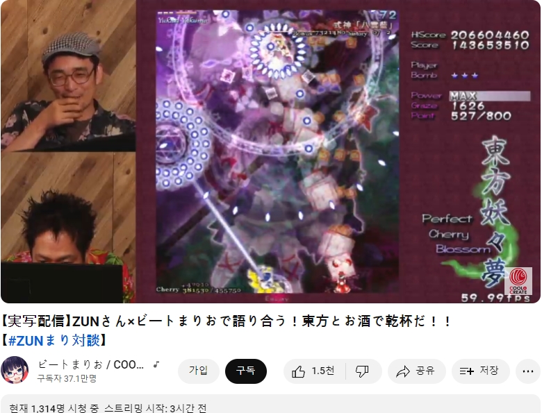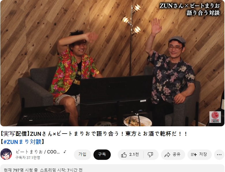 다름 아니라, 비트마리오님 쪽으로 ZUN님을 초청해 함께 라이브 방송을 진행하시는 모양이더군요.