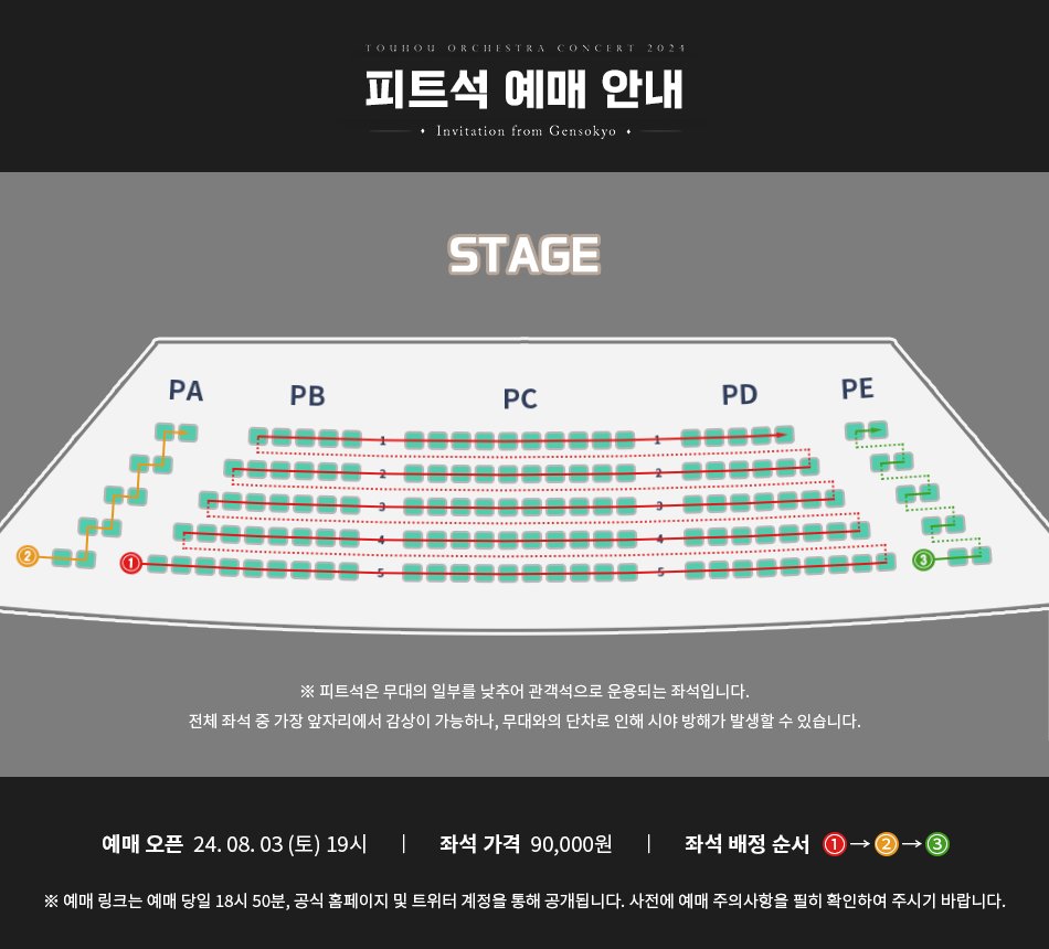 본 공연의 피트석 예매는 동방프로젝트 관련 질의응답을 통해 시행됩니다.