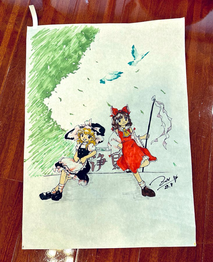 작년 8월경에 ZUN님으로부터 한 지역 신사의 축제에 본인의 손그림을 기부했다는 내용의 안내가 올라온 적이 있었습니다. 쓰루가오카하치만구(鶴岡八幡宮)에서 결혼식을 올렸던 지라 그에 대한 보답을 한 것 같다고 하셨었는데, 당시 트윗으로 살펴보면...