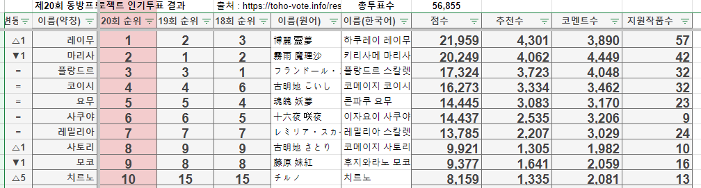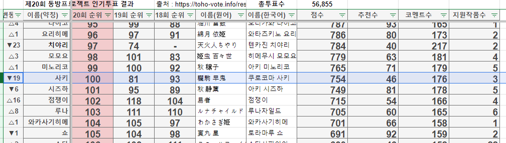 제20회 동방프로젝트 인기투표 오피셜 사이트