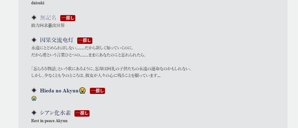 RIP 코멘트들이 잔뜩 보이는게 예의 아큐 사망설 (...) 의 영향도 큰 것 같습니다.