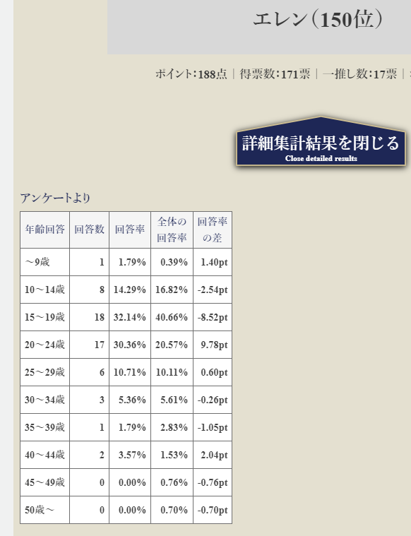 人気投票の年齢層、10代だけで50%超えてるのエグいわ pic.twitter.com/6rm3aK13ME
