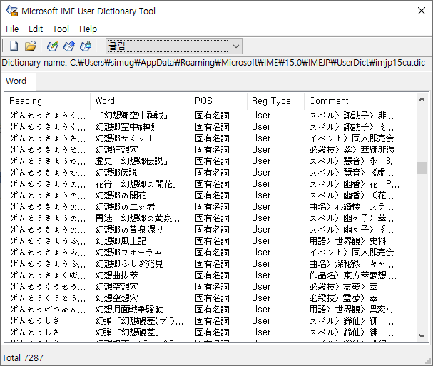 동방프로젝트 사전 - 동방프로젝트에 관련된 단어를 수록한 IME 변환사전