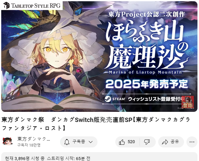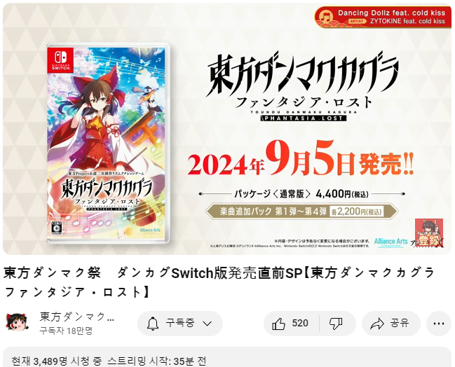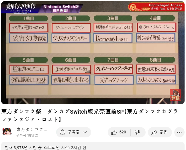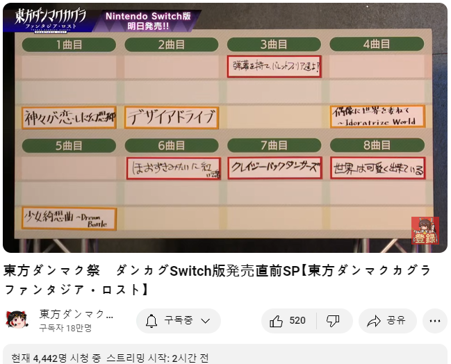 ○ 관련 : https://simugung.tistory.com/185 동방 탄막카구라 판타지아 로스트, 발매를 앞둔 직전 방송 실시 (2024. 2. 7)