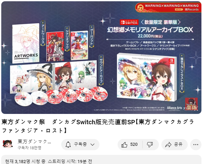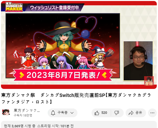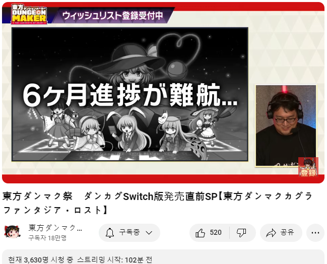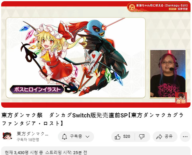 내일인 오는 9/5 에 스위치판의 발매를 앞두고 PC판 발매때 처럼 발매 직전 생방송을 준비하였습니다.