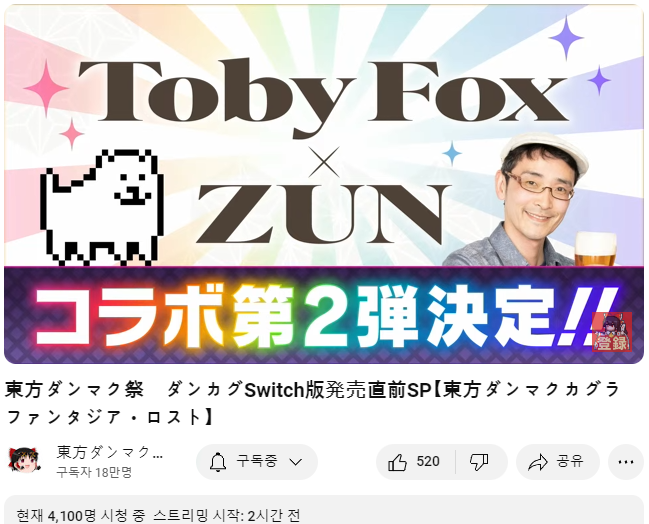 토비폭스와 ZUN님의 콜라보 악곡 제2탄이 나올 예정이라고 하는군요!