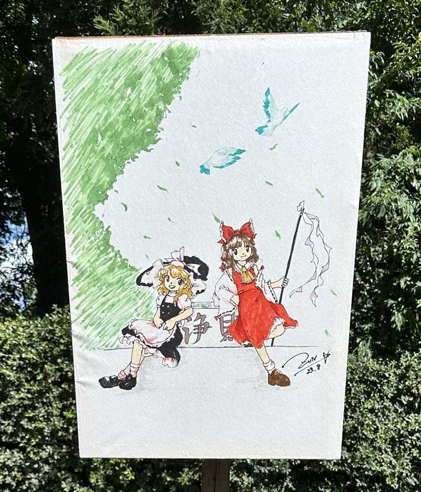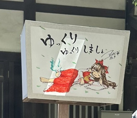 에… 심유경입니다. 안녕하세요? 작년 8월경에 ZUN님으로부터 한 지역 신사의 축제에 본인의 손그림을 기부했다는 내용의 안내가 올라온 적이 있었습니다. 쓰루가오카하치만구(鶴岡八幡宮)에서