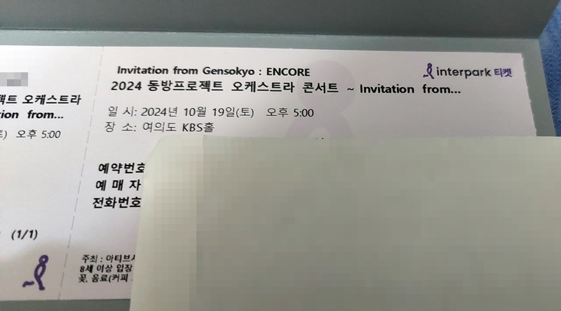 2024 동방프로젝트 오케스트라 콘서트 ~ Invitation from Gensokyo : ENCORE 인터파크 티켓 예매가 2024년 10월 17일 12시 조기 마감됩니다.